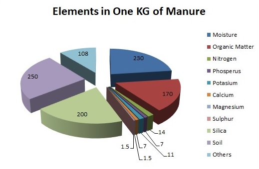 మా Lab నివేదిక ప్రకారం: ఒక కేజీ ఎరువులో 170 గ్రాముల సేంద్రీయ పదార్థం, 230 గ్రాముల తేమ, 12 గ్రాముల నత్రజని, 7 గ్రాముల భాస్వరం, 11 గ్రాముల పొటాషియం, 7 గ్రాముల కాల్షియం, 1.6 గ్రాముల మెగ్నీషియం, 1.5 గ్రాములు సల్ఫర్ మరియు అతి తక్కువ శాతం సూక్ష్మపోషకాలు వున్నాయి. మిగిలిన 560 గ్రాములు ఇసుక (Silica),మట్టి (Soil)మరియు తేలికైన (3 mm పరిమాణం) రాళ్లను కలిగి ఉంటాయి.